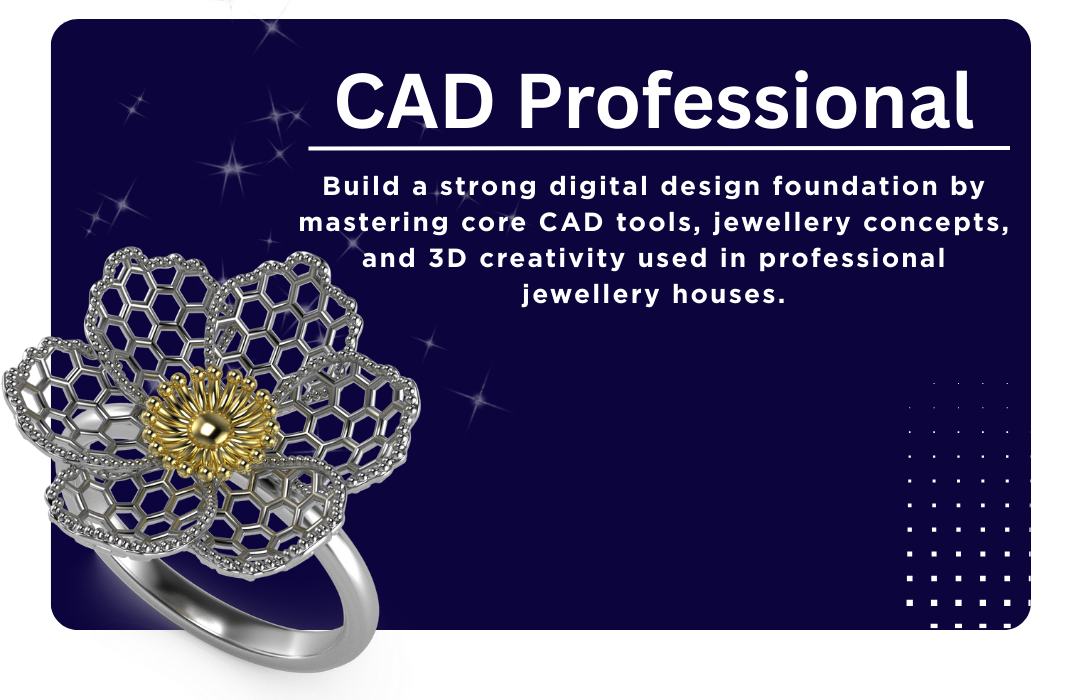 Enroll Now arrow_forwardLearn to merge artistry with technology through expert-led training in CAD/CAM, 3D modeling, and real-world jewellery creation.